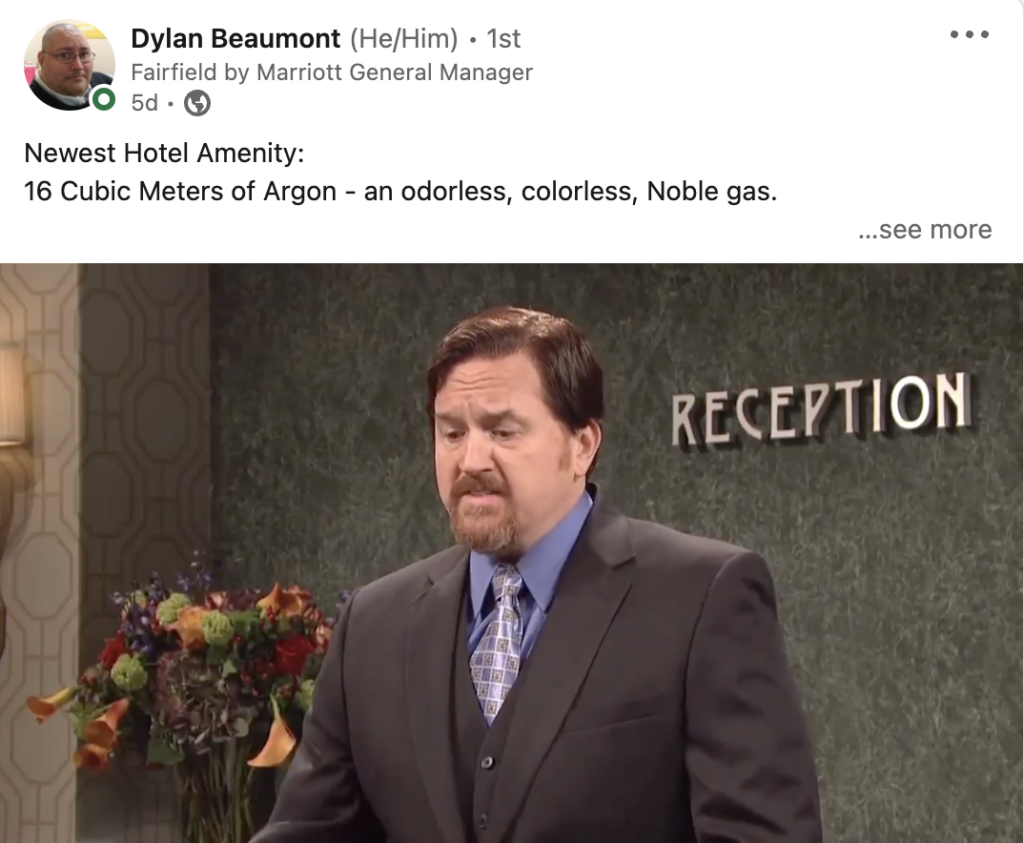 Dylan Beaumont is one of my favorite follows on LinkedIn, sharing a mix of humor, historical hospitality, and advice for operating hotels today.