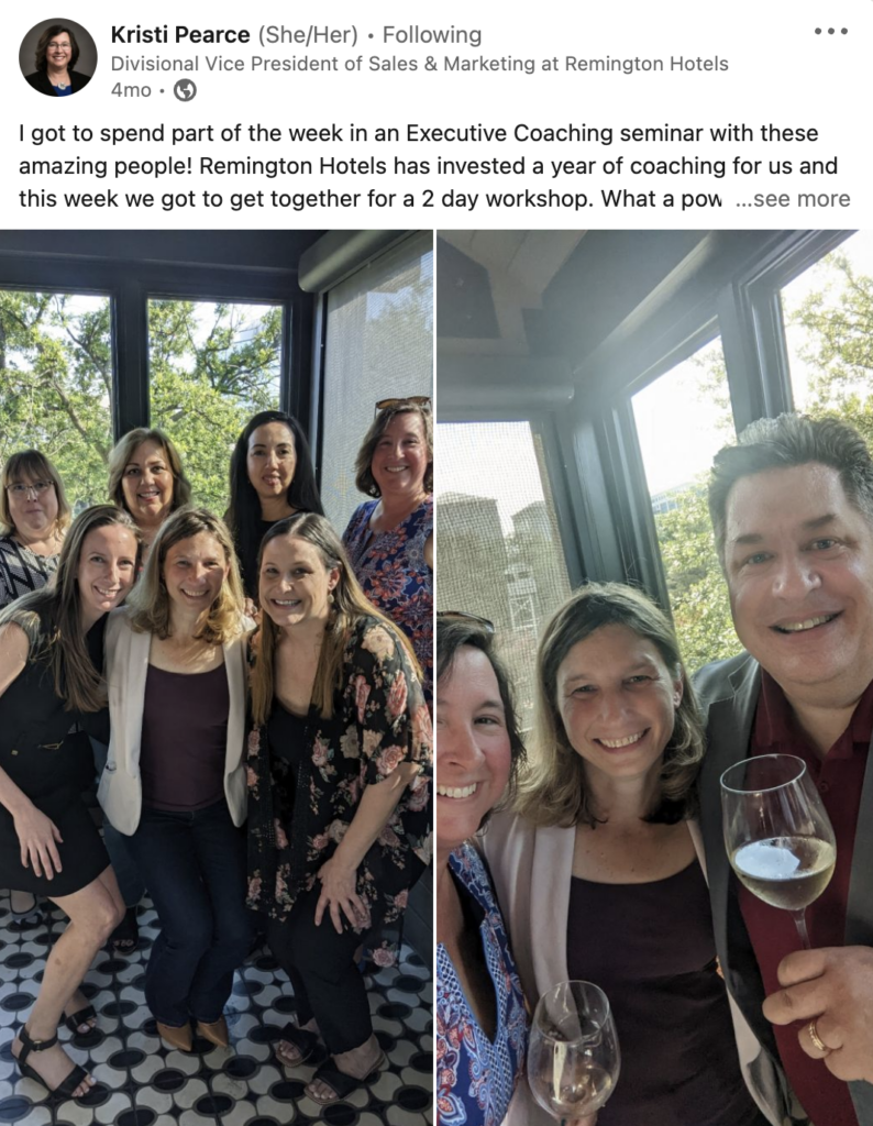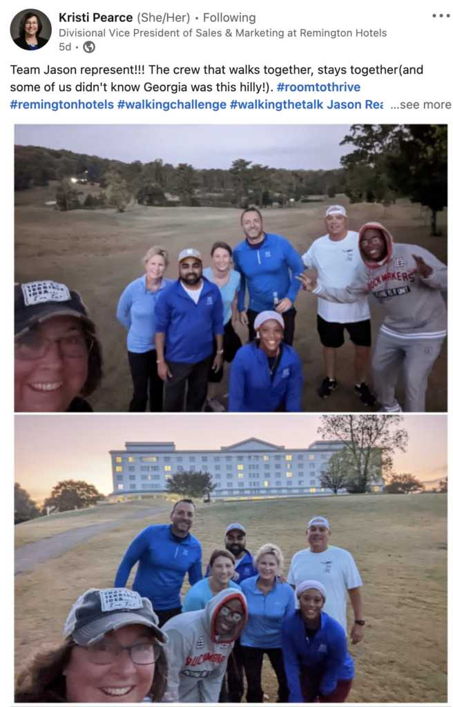 Kristi Pearce frequently shares updates showcasing her teams, their accomplishments, and the Remington culture.