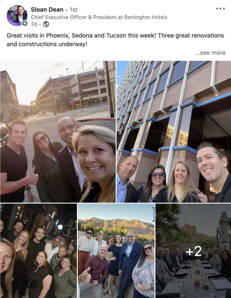 Remington CEO Sloan Dean also uses LinkedIn frequently, posting photos of team events, updates from events he participates in, and media coverage.