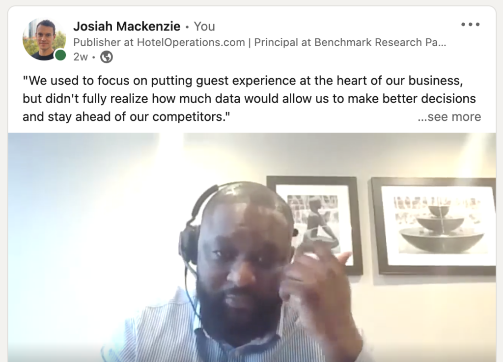 - I manage advertising on LinkedIn for some of the biggest hotel technology companies, which provides insights each month on what’s working from hundreds of thousands of views across the industry (and connects me directly with the LinkedIn team for advice straight from the source)