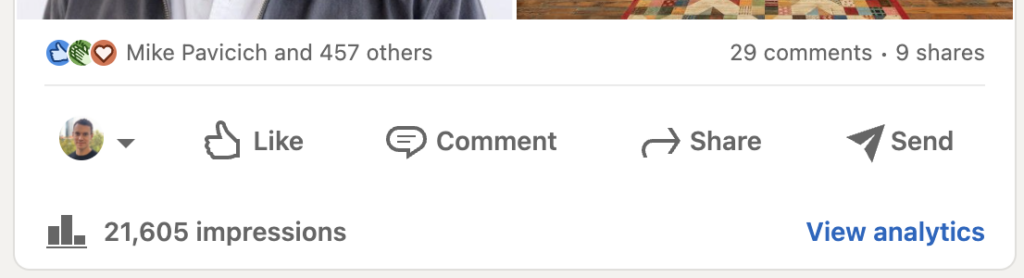 As mentioned above, LinkedIn’s algorithm prefers native content and suppresses posts with links taking people off the site. Put another way, if you share links, expect less people will see your post.