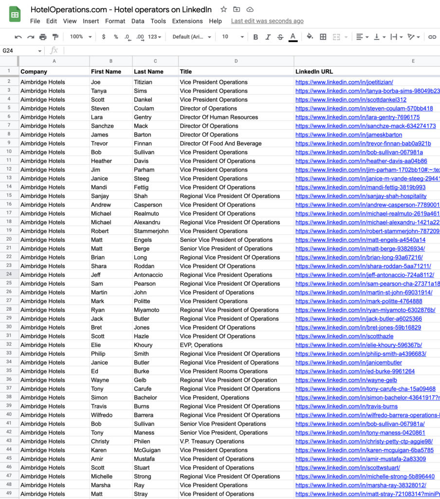 A top reason hoteliers tell me they’re on LinkedIn is to network. To encourage this, I’ve put together a big list of operators at management companies in the US on LinkedIn: