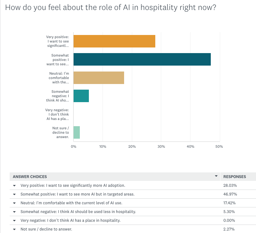 Three out of four hoteliers in the study indicated wanting to see more AI used in hospitality, with owners and investors showing the strongest support for this.