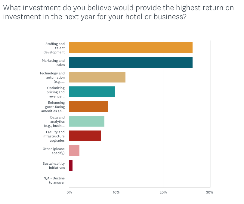 Data: Hoteliers see investments in people, sales, and marketing as driving the highest ROI in 2025